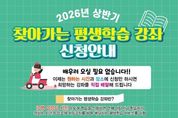 [경기뉴스원/경기뉴스1] | 안성시는 시민이 원하는 시간과 장소에서 희망하는 강좌를 수강할 수 있는 '2026년 상반기 찾아가는 평생학습 강좌'를 운영한다고 밝혔다. ‘찾아가는 평생학습 강좌’는 10명 이상의 시민이 학습동아리를 만들어 강좌를 신청하면, 강사가 직접 현장을 방문하여 교육을 진행하는 수요자 중심의 평생학습 프로그램이다. 신청 가능한 강좌 분야는 인문교양, 문화예술, 직업능력 등 다양하며, 다만 평생학습장터, 주민자치센터, 보건소, 경로당, 농업기술센터 등 타 부서에서 지원받는 동일·유사 프로그램은 중복 신청할 수 없다. 학습동아리는 강좌당 최대 24시간 범위 내에서 운영할 수 있으며, 강사비는 안성시에서 지원하고 재료비 등은 학습자가 부담한다. 신청기간은 4월 2일부터 4월 9일까지이며, 총 15개 강좌를 선착순으로 접수한다. 신청 대상은 안성시에 주소를 둔 10명 이상의 학습동아리이다. 신청은 안성배움e 홈페이지를 통해 온라인으로 가능하며, 안성배움e 홈페이지 → 평생교육사업 → 찾아가는 평생학습 강좌 → 평생학습 강좌 운영방법 → 신청서 다운로드 및 작성 → 신청서