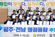 [경기뉴스원/경기뉴스1] | 전라남도는 16일 전남도청 왕인실에서 ‘2026년 도-시군 상생협력 간담회’를 열어 지역 대도약을 위한 광주·전남 행정통합 추진에 도와 22개 시군이 공동 보조를 맞추기로 했다. 간담회는 김영록 전남도지사와 22개 시장·군수 등 관계자 100여 명이 참석한 가운데, 광주·전남 행정통합 추진계획과 전남도 재생에너지 추진전략을 중심으로 발표와 토론이 진행됐다. 이들은 광주·전남 행정통합을 통해 대한민국 제1호 통합 광역지방정부 출범을 목표로, 도와 시군이 상생 협력 의지를 재확인하고, 전남의 미래 성장 전략을 논의했다. 특히 특별법 제정안을 중심으로 행정통합 추진 경과와 향후 일정을 공유하고, 전남을 대한민국 첨단산업을 이끄는 ‘재생에너지의 심장’으로 육성하기 위한 시군의 협력 방향과 역할 분담에 공감대를 형성했다. 김영록 지사와 전남시장군수협의회는 광주·전남 행정통합 환영 성명서를 발표하고, 초광역 경제 중심지 도약을 위한 행정 통합에 적극 협력할 뜻을 밝혔다. 또한 22개 시군의 고유한 특성과 자율성이 존중되는 균형발전형 통합과 민주적 합의, 도민 공감대 형