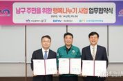 [경기뉴스원/경기뉴스1] | 부산 남구청은 지난 10월 14일, 부산항만공사(BPA), 신선대감만터미널(BPT)과 남구 지역 취약계층을 지원하는 '2025년 행복나누기 사업' 업무협약을 체결했다고 밝혔다. ‘행복나누기 사업’은 남구청의 이웃돕기 사업으로 민·관 등의 지역 후원을 기반으로 복지 사각지대를 해소하고 취약계층의 생활 안정을 돕는 것을 목표로 한다. 이번 협약에 따라 △부산항만공사는 지역사회 공헌을 위한 특화사업 발굴 △신선대감만터미널은 성금 후원 △남구청은 대상자 발굴 및 복지서비스 연계를 각각 담당해 지역 상생과 협력 체계를 강화할 예정이다. 부산항만공사는 2022년부터 남구청과 복지 사각지대 발굴 사업인‘항만 인근 찾아가는 사회공헌 사업’을 추진하며 매년 1500만 원을 후원하고 있다. 또한 남구 항만 인근 복지시설에 ‘BPA희망곳간’을 설치·운영하며 주민 복지 증진에 기여하고 있다. 신선대감만터미널 또한 ‘남구 희망나눔 캠페인’ 참여 등 다양한 복지 공헌 활동을 이어오고 있으며, 이번 협약에서도 이웃돕기 성금으로 2,650만 원을 기부해 올해에만 누적 6,000만 원의