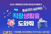[경기뉴스원/경기뉴스1] | 수원시청소년청년재단(이사장 최종진) 청청마음건강센터는 오는 12월 6일 오후 2시부터 4시까지, 관내 청년(19~39세) 및 지역주민의 심리 및 정서 지원을 위한 청년공감 힐링토크 “응급처치 심리학, 직장생활을 도와줘”를 개최한다고 밝혔다. 이번 청년공감 힐링토크는 “심리학, 직장생활을 도와줘” 책의 저자이자 조직 및 산업심리학 박사인 박진우 박사를 초청하여 청년 직장인의 안녕감과 조직의 성과 향상을 위한 심리적 기술을 업무 현장에 쉽게 적용할 수 있도록 도울 예정이다. 강연 내용으로는 ▲1부(14:00~15:00)에서 청년들의 성공적인 직장생활을 위한 심리 기술을 전달하고 ▲2부(15:00~16:00)는 직장생활에서 경험하는 다양한 상황과 고민에 대한 솔루션을 제공한다. 광교청소년청년센터 4층 멀티강의실에서 운영되는 이번 강연은 관내 청년 뿐 만 아니라 관심 있는 지역주민 누구나 무료로 사전신청(QR코드)을 통해 참여가능하다. 청청마음건강센터 관계자는 “청년공감 힐링토크”를 통해 직장생활을 잘하고 싶은 청년 개개인에게 필요한 심리기술을 제공하고, 솔루션을 통해 청년들