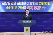 [경기뉴스원/경기뉴스1] | 전라남도의회 농수산위원회 류기준 의원(더불어민주당·화순2)은 2월 9일 제396회 임시회 폐회 직후 열린 성명 발표에 동참해, 송전선로 건설을 둘러싼 전남 지역의 구조적 문제를 공론화하는 데 뜻을 함께했다. 이날 도의원 일동은 성명서를 통해 “정부와 한국전력이 추진 중인 국가기간 전력망 확충 정책이 전남 지역에 과도한 부담을 초래하고 있다”고 지적하며, “전남도민의 생존권과 환경권을 침해할 우려가 있는 송전선로 건설 계획에 대해 전면적인 재검토와 에너지 정책의 방향 전환이 필요하다”는 입장을 밝혔다. 성명서에 따르면 정부는 국가기간 전력망 확충을 이유로 전국에 총 99개의 송전선로와 변전소 건설을 추진하고 있으나, 이 가운데 약 38%가 호남 지역에 집중돼 있다. 특히, ‘에너지 고속도로’ 사업으로 신안해상풍력~신장성~신정읍, 신해남~신장성, 신해남~신강진 등 초고압 송전선로가 장성·해남·영암·강진·화순 등 전남 다수 지역을 관통할 예정이다. 도의회는 이러한 사업 구조가 전남에서 생산된 전력을 수도권 반도체 국가산단 등에 공급하는 데 초점이 맞춰져 있는 만큼, 산림 훼손
