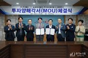 [경기뉴스원/경기뉴스1] | 영천시는 19일 시청 영상회의실에서 ㈜태산과 농업회사법인 ㈜태산글로벌과 220억원 규모의 투자협약(MOU)을 체결했다. 협약식에는 최기문 영천시장, 허광옥 ㈜태산·농업회사법인 ㈜태산글로벌 대표이사 등 관계자들이 참석해 성공적인 사업 추진을 위한 상호 협력을 약속했다. 이번 협약에 따라 ㈜태산과 ㈜태산글로벌은 영천시 금호일반산업단지 내 약 5,500평 부지에 총 220억원을 투자해 앙금 및 베이커리 제품 생산라인을 구축할 계획이다. ㈜태산은 1994년 설립된 앙금 전문 제조기업으로, 제과.제빵용 앙금 제품을 중심으로 다양한 식품 소재를 생산하며 국내 식품기업과 프랜차이즈에 공급하고 있다. 또한 일본과 미국 등 해외시장에도 제품을 수출하며 사업을 확대하고 있다. 농업회사법인 ㈜태산글로벌은 2023년 설립된 기업으로, 글로벌 시장 확대와 브랜드 사업 강화를 목표로 디저트 브랜드 ‘알렛(ALLET)’을 선보이며 모찌 등 다양한 제품 개발을 통해 사업 기반을 확장하고 있다. 영천시는 이번 투자협약이 원활히 추진될 수 있도록 행정적 지원에 적극 나설 계획이며, 이번 투