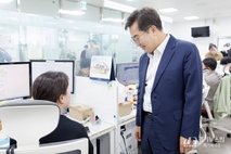 【경기=경기뉴스원/경기뉴스1】 | 김동연 경기도지사가 고유가 피해지원금 접수 첫날 현장을 찾아 “어렵게 만든 제도”라는 점을 강조하며 일선 행정의 역할을 당부했다. 단순한 지원금 집행을 넘어, 복합 위기 속에서 마련된 정책의 취지를 살리는 것이 중요하다는 메시지다. 김 지사는 27일 안양시 관양동 행정복지센터를 방문해 도민 의견을 청취하고, 지원금 접수 상황을 점검하는 한편 현장 직원들을 격려했다. 이날 방문은 경기도가 같은 날부터 31개 시·군을 대상으로 ‘고유가 피해지원금’ 1차 접수를 시작한 데 따른 것이다. 특히 경기도는 거동이 불편한 고령자 등을 위해 ‘찾아가는 신청 서비스’를 도입했다. 전담팀이 직접 대상자를 방문해 신청 접수부터 지급까지 전 과정을 지원하는 방식으로, 행정 접근성이 낮은 취약계층까지 포괄하겠다는 취지다. 김 지사는 이 자리에서 “정부가 어려운 경제 여건과 전쟁 등 복합적인 상황 속에서 추가경정예산으로 어렵게 만든 제도”라며 “힘들더라도 현장에서 잘 운영해달라”고 말했다. 이어 “주민을 직접 상대하는 일선 직원들의 역할이 무엇보다 중요하다”며 “현장에서 얼마나 충실히 집행하느냐에 따라 지원금의 취지가 살아날 수 있다”고 강조했다.