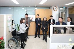 [경기뉴스원/경기뉴스1] | 아산시의회 문화복지환경위원회가 지난 9일, 제264회 임시회 기간 중 주요업무계획보고의 일환으로 최근 신설된 ‘장애인복지과’ 사무실을방문해 현장 점검을 실시했다. 이번 점검은 장애인 복지 행정의 컨트롤타워인 장애인복지과가 정작 수요자인 장애인들이 이용하기에 불편함이 없도록 설계됐는지, 접근성과 편의 실태를 직접 확인하기 위해 마련됐다. 현장에는 이춘호 위원장과 김은아 부위원장을 비롯해 맹의석, 천철호, 김미성 위원과 관계 공무원들이 참석했다. 현장을 둘러본 의원들은 신설 사무실의 열악한 접근성에 대해 우려를 표했다. 현장에 동행한 장애인복지과장은 “사무실 입구가 매우 협소해 일반 휠체어조차 이동이 어렵고, 특히 전동 휠체어는 출입이 사실상 불가능한 상황”이라며 “사무실 내부 활동 공간도 제약이 많아 민원인들이 큰 불편을 겪고 있다”고 설명했다. 위원들은 장애인 복지 행정을 전담하는 부서임에도 불구하고, 기본적인 ‘무장애’ 환경조차 갖추지 못한 점을 강하게 질타했다. 위원들은 “민원을 처리하러 온 장애인들이 문턱에서 발길을 돌려야 하는 상황은 어불성설”이라며 안타까움을 표했다. &nb