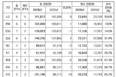 2026 신한 SOL KBO 리그, 역대 최소 경기 100만 관중 달성