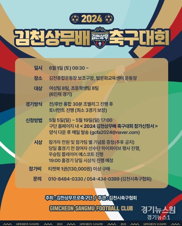 경기뉴스원(경기뉴스1) | 김천상무가 ‘2024 김천상무배 축구대회’ 참가팀을 모집한다.