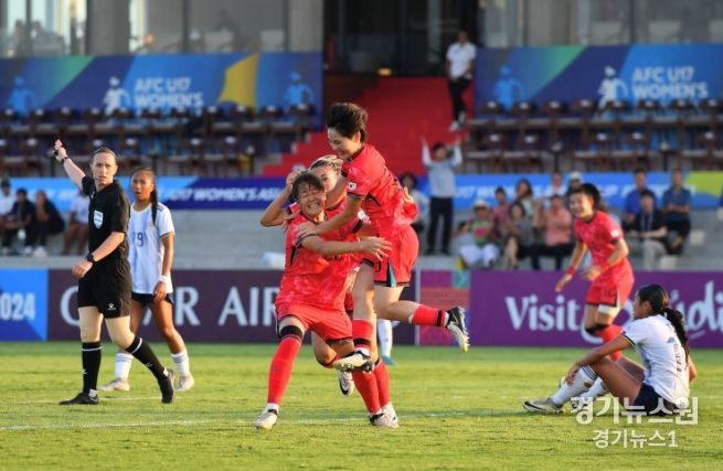 김은정 감독이 이끄는 여자 U-17 대표팀은 12일(한국시간) 인도네시아 발리 유나이티드 트레이닝센터에서 열린 필리핀과의 2024 아시아축구연맹(AFC) U-17 아시안컵 조별리그 A조 3차전에서 전반에 선제골을 내줬으나 후반 29분 범예주의 귀중한 동점골에 힘입어 1-1로 비겼다.