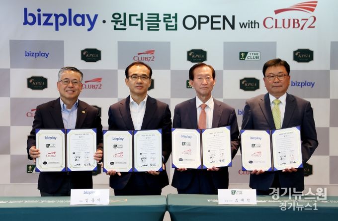 경기뉴스원(경기뉴스1) | ㈜한국프로골프투어(대표이사 김원섭, 이하 KPGT)가 27일 경기 성남 소재 KPGA 빌딩에서 KPGA 투어 ‘비즈플레이-원더클럽 오픈 with 클럽72’ 대회 개최 조인식을 가졌다.