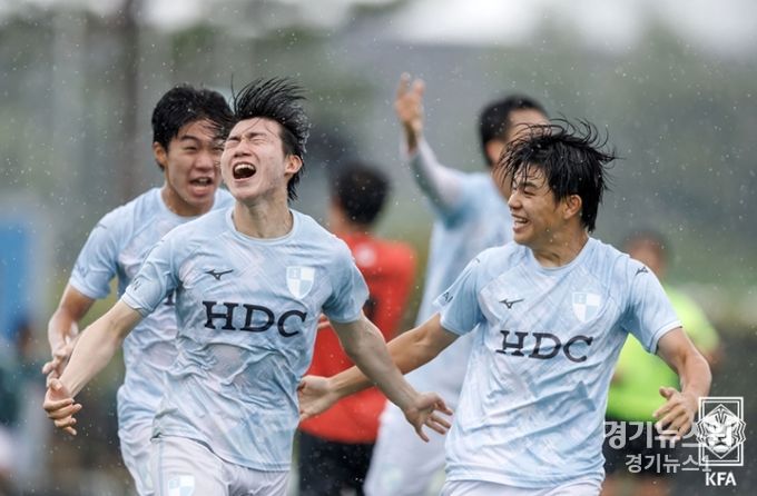 경기뉴스원(경기뉴스1) | 8일 대한축구협회장배 8강에서 강원FCU18를 상대로 부산아이파크U18 오주안(왼쪽)이 득점을 터뜨린 후 기뻐하고 있다.