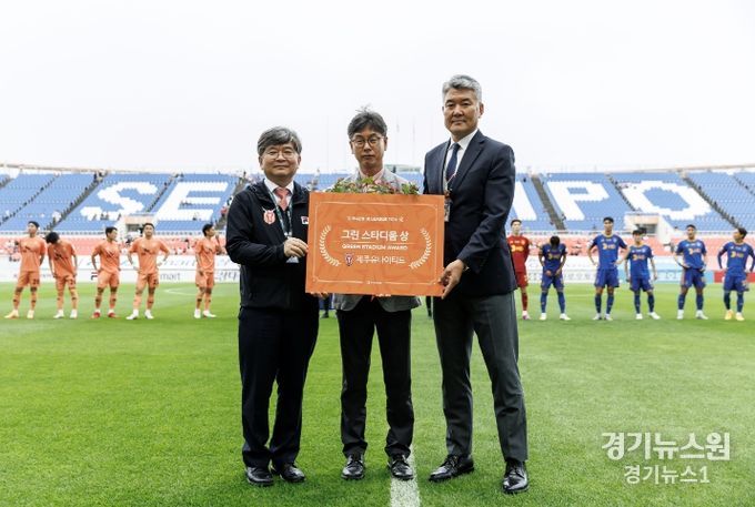 경기뉴스원(경기뉴스1) | 서귀포시 체육진흥과에서 관리하는 제주월드컵경기장이 K리그 1 최고의 잔디 구장에 주어지는 그린 스타디움상을 수상했다.