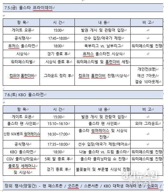 경기뉴스원(경기뉴스1) | KBO는 5일(금) 개최되는 올스타 프라이데이와 6일(토) 펼쳐지는 KBO 리그 별들의 축제 ‘2024 신한 SOL뱅크 KBO 올스타전’ 행사 계획을 확정했다.