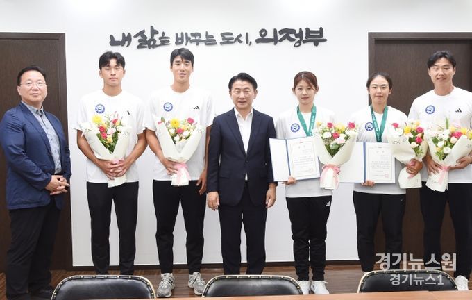 경기뉴스원(경기뉴스1) | 김동근 의정부시장이 7월 16일 최근 국내외 대회에서 눈부신 활약을 펼친 의정부시청 직장운동경기부 테니스팀을 격려했다.
