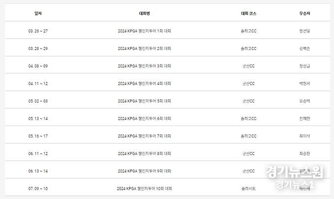 경기뉴스원(경기뉴스1) | 2024 시즌 KPGA 투어 챌린지투어가 ‘10회 대회’를 기점으로 반환점을 돌았다. 올 시즌 KPGA 챌린지투어는 총 20개 대회가 진행된다.