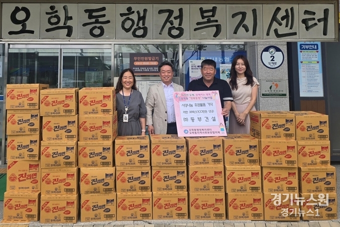 경기뉴스원(경기뉴스1) | ㈜동부건설(대표 이붕래)은 지난 8일 어려운 이웃에게 전달해달라며 라면 38박스(100만 원 상당)을 오학동 행정복지센터에 기탁했다.