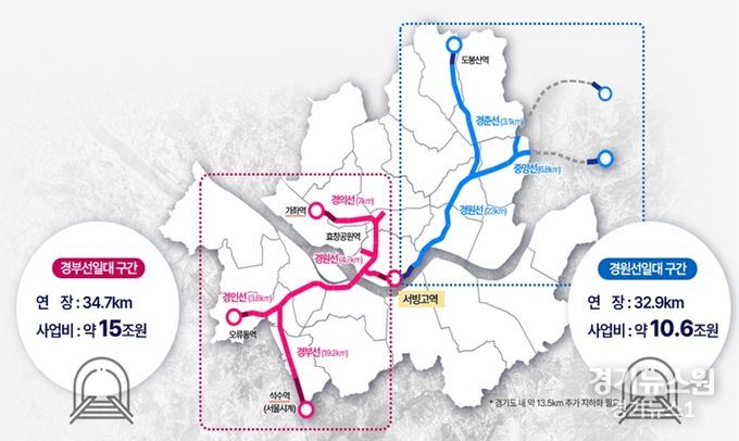 이번에 국토부에 제안할 서울 시내 철도 지하화 구간은 경부선 일대 34.7㎞, 경원선 일대 32.9㎞, 총 67.6㎞로 총 39개 역사를 포함한다. 시는 다수노선을 공유하는 복잡한 철도망 특성과 지상~지하 연결 가능 여부 등 면밀한 기술적 검토를 바탕으로 지하화가 실현 가능한 대상 구간을 최종적으로 선정했다고 덧붙였다.