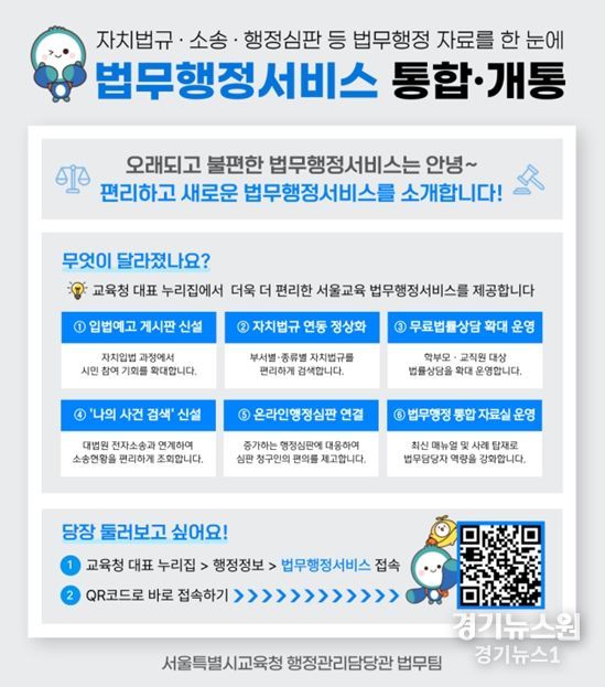 경기뉴스원(경기뉴스1) | 서울특별시교육청은 시민에게 보다 높은 수준의 법무행정 서비스를 제공하기 위하여, 법무행정서비스 누리집을 개편하고 12월 4일부터 본격 운영한다.