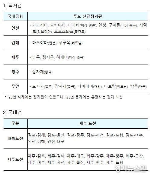 경기뉴스원 | 국토교통부는 국내외 항공사들이 신청한 ’23년 동계기간 (’23.10.29.~’24.3.30.) 국제선·국내선의 정기편 항공운항 일정(스케줄)을 확정했다고 밝혔다.