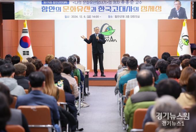 경기뉴스원(경기뉴스1) | 함안군은 6일 오후 2시 군청 3층 대회의실에서 ‘나의 문화유산답사기’ 시리즈의 저자이자 전 문화재청장인 유홍준 교수를 초청해 제175회 함안군민대학 강좌를 개최했다.