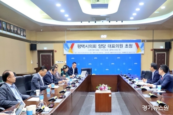 더존언론인클럽은 26일 평택시의회 대회의실에서 평택시의회 양당 대표 의원 초청 간담회를 개최했다.
