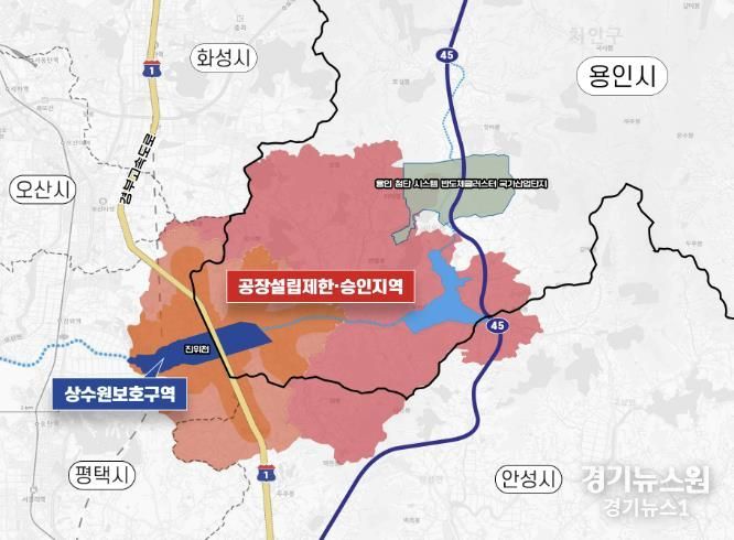 경기뉴스원(경기뉴스1) | 45년 동안 용인의 방대한 지역(남사ㆍ이동읍 64.43㎢, 약 1950만평)에 규제를 가해 시민의 재산권 행사와 시의 발전에 큰 제약을 가했던 ‘송탄 상수원보호구역’과 그에 따른 공장설립제한ㆍ승인 지역 지역이 완전히 해제됐다.
