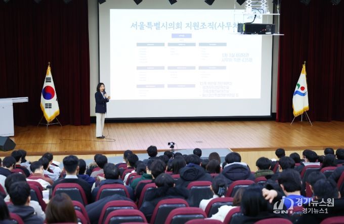 경기뉴스원(경기뉴스1) | 최호정 서울특별시의회 의장은 14일 서울시인재개발원에서 7~9급 신규 공무원 330여 명을 대상으로 소통 강연을 했다.