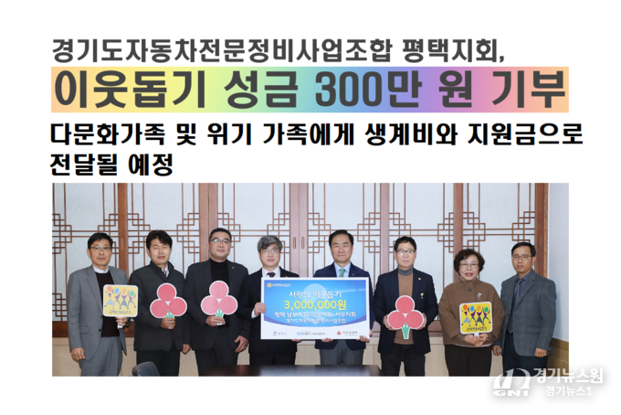 경기뉴스원(경기뉴스1) | 경기도자동차전문정비사업조합 평택 남부, 북부, 서부지회는 지난 17일 관내 어려운 이웃들을 위한 성금 300만 원을 평택시 행복나눔본부에 기부했다.