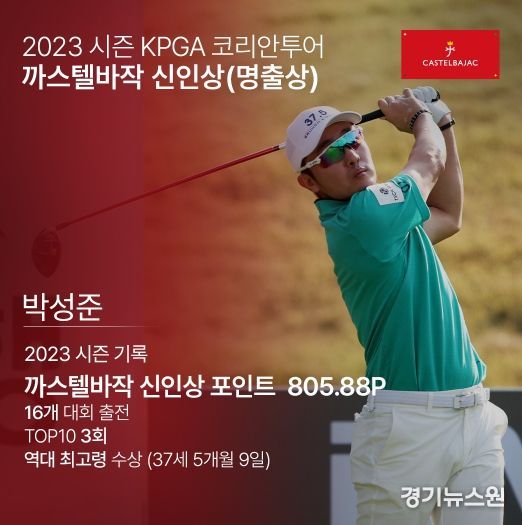 경기뉴스원 | 박성준(37.37.5브런치카페)이 2023 시즌 KPGA 코리안투어 ‘까스텔바작 신인상(명출상)’을 차지했다.
