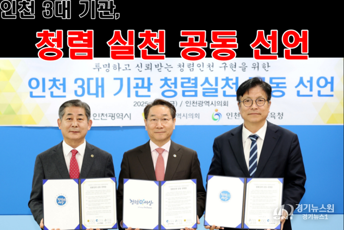 경기뉴스원(경기뉴스1) | 인천광역시의회(의장 정해권)는 4일 의회 접견실에서 인천광역시(시장 유정복), 인천광역시교육청(교육감 도성훈)과 함께 ‘인천 3대 기관 청렴 실천 공동 선언식’을 개최했다.