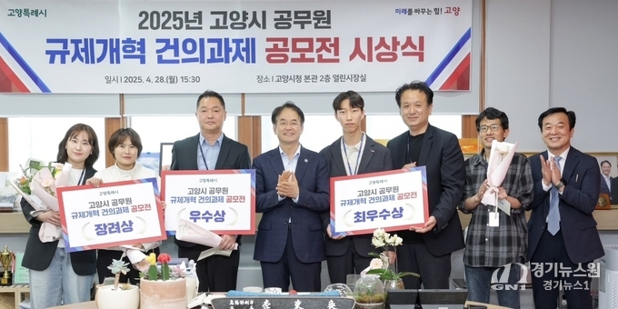 【고양=경기뉴스원/경기뉴스1】 |고양특례시는 시민과 기업의 불편 해소를 위한 2025년 공무원 규제개혁 건의과제 공모전에서 총 7건의 우수과제를 선정하고, 지난 28일 시상식을 개최했다고 밝혔다.