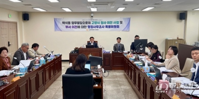 【고양=경기뉴스원/경기뉴스1】 | 고양특례시의회 ‘백석동 업무빌딩으로의 고양시청사 이전사업 및 부서이전에 대한 행정사무조사 특별위원회(위원장 임홍열)’는 지난 4월 25일 제6차 행정사무조사를 열고 시 집행부를 상대로 시청사 이전과 관련한 주요 사안을 집중 점검했다.
