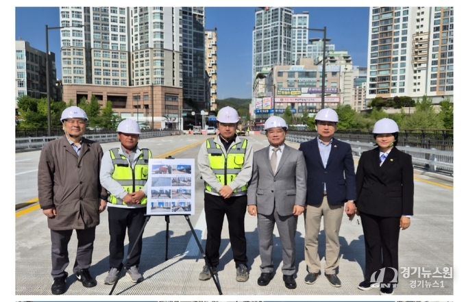 [경기뉴스원/경기뉴스1] | 성남시 분당구 정자교가 5월 3일 임시 통행 재개를 앞두고 있는 가운데, 김병욱 전 국회의원을 비롯한 성남시의회 관계자들이 2일 복구 현장을 점검했다.