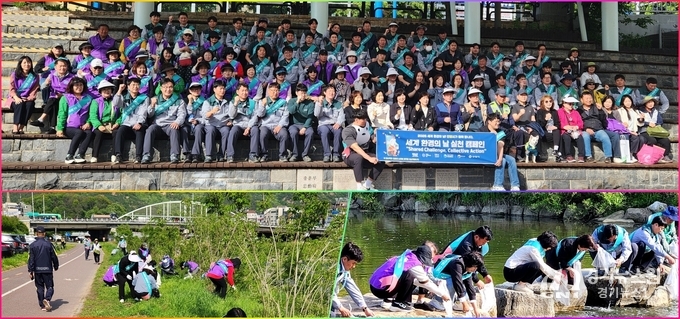 【안양=경기뉴스원/경기뉴스1】 | 안양시는 '세계 환경의 날'(6월 5일)을 앞두고 7일 오후 3시부터 5시까지 안양천에서 환경 실천 캠페인을 진행했다고 8일 밝혔다. 이번 캠페인에는 시 공무원, 지역 주민, 기업 관계자 등 약 100명이 참여하여 안양대교 인근 안양천부터 충훈2교 광장까지 하천 정화와 생태계 보호 활동을 펼쳤다.