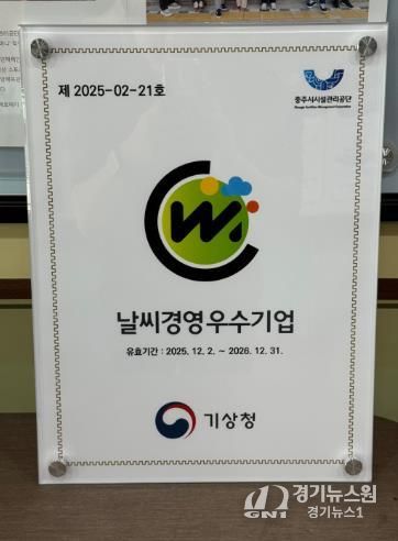 [경기뉴스원/경기뉴스1] | 충주시시설관리공단은 최근 기상청으로부터 ‘날씨경영우수기업’ 인증을 갱신 받았다고 밝혔다.