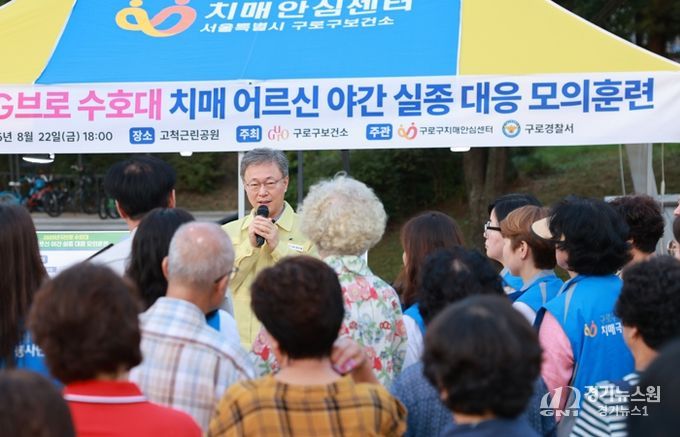 [경기뉴스원/경기뉴스1] | 구로구가 8월 22일 오후 7시 고척근린공원에서 ‘G(지)브로(집으로) 수호대’ 야간 치매 실종 대응 모의훈련을 진행했다.