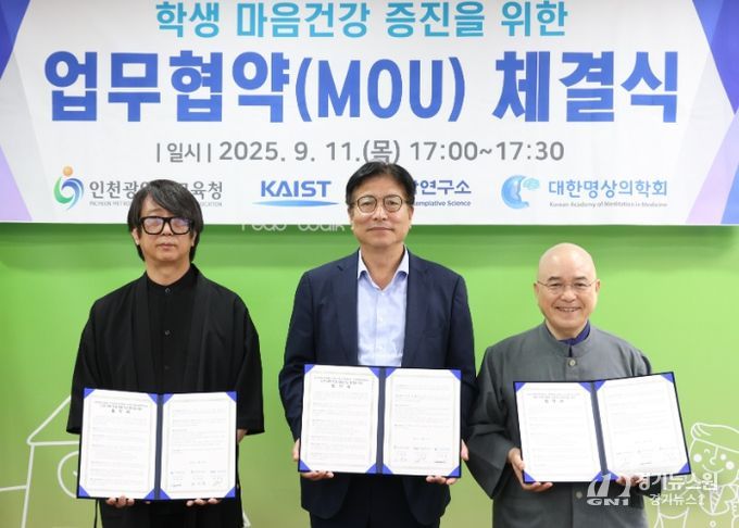 [경기뉴스원/경기뉴스1] | 인천광역시교육청은 11일 KAIST 명상과학연구소, 대한명상의학회와 ‘학생 마음건강 증진을 위한 업무협약’을 체결했다.