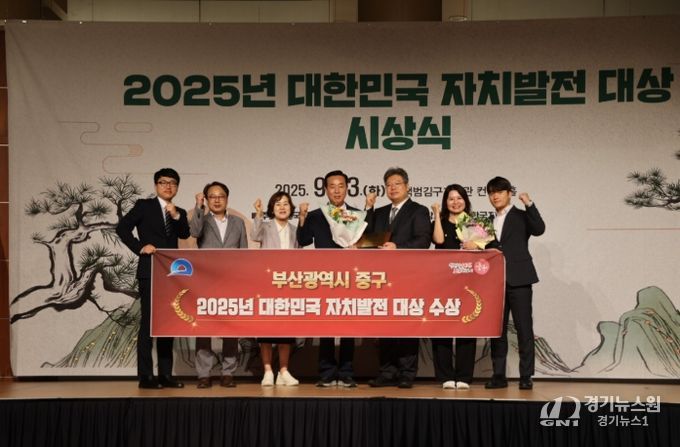 [경기뉴스원/경기뉴스1] | 부산 중구는 지난 23일 열린‘2025 대한민국 자치발전 대상’시상식에서 기초자치단체 부문 수상의 영예를 안았다.