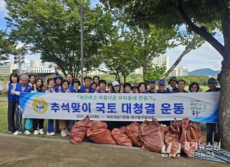 [경기뉴스원/경기뉴스1] | 바르게살기운동 대구동구협의회는 지난 23일, 동촌유원지 일대에서 추석 맞이 국토대청결운동을 실시했다.