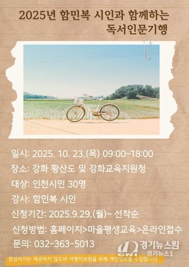 [경기뉴스원/경기뉴스1] | 인천광역시교육청신트리도서관은 10월 23일 인천시민을 대상으로 ‘함민복 시인과 함께하는 독서인문기행’을 운영한다.