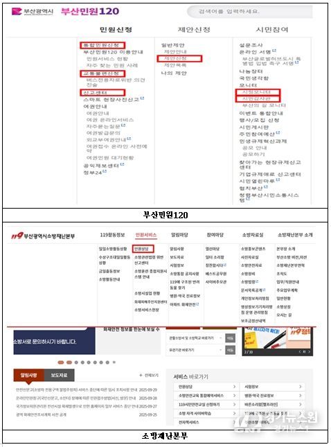 보다 자세한 내용은 각 기관(부산민원120, 소방재난본부, 상수도사업본부) 누리집 공지사항을 통해 확인할 수 있으며, 전화 문의는 시 통합민원과로 하면 된다.