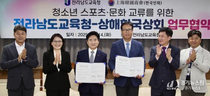 [경기뉴스원/경기뉴스1] | 전라남도교육청은 14일 상해한국상회와 ‘청소년 스포츠·문화 교류를 위한 업무협약(MOU)’을 체결했다.