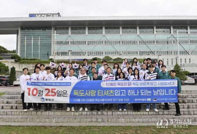 [경기뉴스원/경기뉴스1] | 봉화군은 10월 25일 ‘독도의 날’을 맞아 군청 잔디광장에서 ‘우리 땅 독도 사랑하기 운동’을 전개하며 독도 수호 의지를 다졌다.
