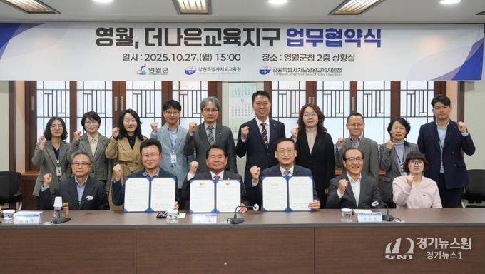 [경기뉴스원/경기뉴스1] | 강원특별자치도교육청은 영월군청(군수 최명서), 영월교육지원청과 10월 27일 영월군청에서 ‘영월 더나은교육지구 연장지정 업무협약’을 체결했다.