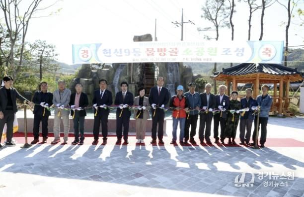 [경기뉴스원/경기뉴스1] | 상주시 동문동에서는 10월 27일 11시 헌신9통 소공원(헌신동 260-13 일원)에서 강영석 상주시장, 지역구 시의원을 비롯한 동문동 기관단체장 등 마을주민 50여 명이 참석한 가운데 헌신9통 물방골 소공원 조성 준공식을 개최했다.