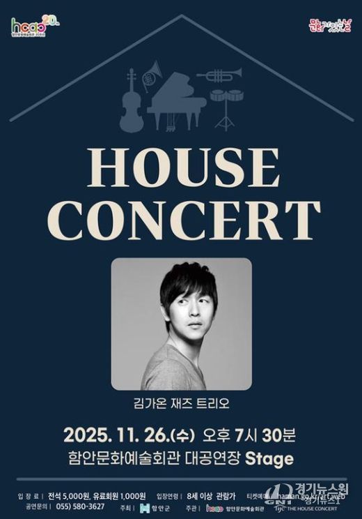 [경기뉴스원/경기뉴스1] | 함안군은 오는 11월 26일 오후 7시 30분, 대표 기획 시리즈 ‘하우스콘서트’를 11월 ‘문화가 있는 날’ 프로그램으로 마련해 재즈 피아니스트 김가온을 초청한다고 밝혔다.