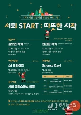 [경기뉴스원/경기뉴스1] | 이천시 서희도서관은 개관을 기념하고 한 해를 마무리하는 송년 행사로, 시민들과 함께하는 문화예술과학 프로그램인 ‘서희 START : 따뜻한 시작’을 12월 한 달간 운영한다고 밝혔다.