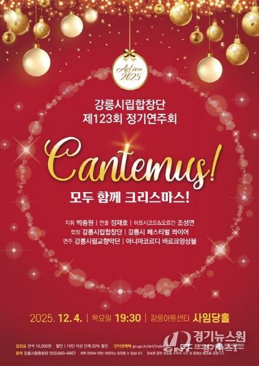 [경기뉴스원/경기뉴스1] | 강릉시가 다채로운 공연과 전시를 마련해 시민과 관광객들에게 따뜻하고 풍성한 연말정취를 선사한다. 세계적인 현대미술 작가 캐서린 번하드 특별전과 국내 작가 콰야의 전시를 비롯해 강릉시립합창단의 제123회 정기연주회 및 기획공연, 초당작은도서관 크리스마스 이벤트 등으로 문화와 겨울 바다를 동시에 즐길 수 있는 강릉만의 특별한 연말 분위기를 만들 것으로 기대된다.