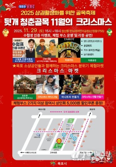 [경기뉴스원/경기뉴스1] | 목포시는 오는 11월 29일(토) 온누리어린이공원에서 ‘뒷개 청춘골목 11월의 크리스마스’를 개최한다.