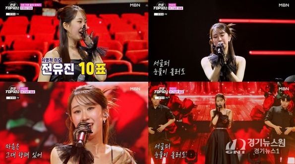 전유진은 지난 2일 밤 방송된 MBN ‘한일톱텐쇼’에 출연했다. 이날 방송은 연말 특집으로 진행됐으며, ‘3대 가문 끝장 어워즈’를 주제로 ‘현역가왕1’, ‘현역가왕2’, ‘현역가왕 재팬’의 주역들이 총출동해 풍성한 무대를 꾸몄다.