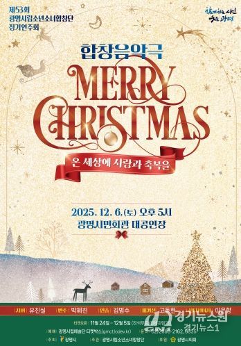 [경기뉴스원/경기뉴스1] | 광명시는 오는 6일 오후 5시 광명시민회관 대공연장에서 광명시립소년소녀합창단 제53회 정기공연 ‘메리 크리스마스(Merry Christmas)’를 개최한다.