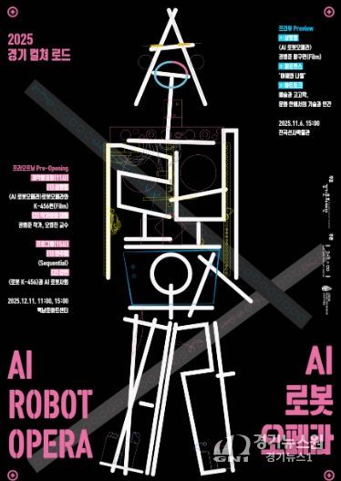 [경기뉴스원/경기뉴스1] | 경기문화재단 백남준아트센터는 12월 11일 백남준아트센터 랜덤엑세스홀에서 2025 경기 컬쳐 로드 〈AI 로봇오페라(Robot Opera)〉 프리오프닝(Pre-Opening)을 개최한다. 이번 행사는 내년 백남준 서거 20주기를 앞두고 시범적으로 추진되는 ‘AI 로봇 오페라 프로젝트’의 일환으로, 〈로봇 K-456〉을 통해 1964년 《로봇오페라》 퍼포먼스에서 보여준 기술과 예술의 만남을 현대적으로 재해석해 백남준의 정신을 잇고자하는 취지로 기획됐다.